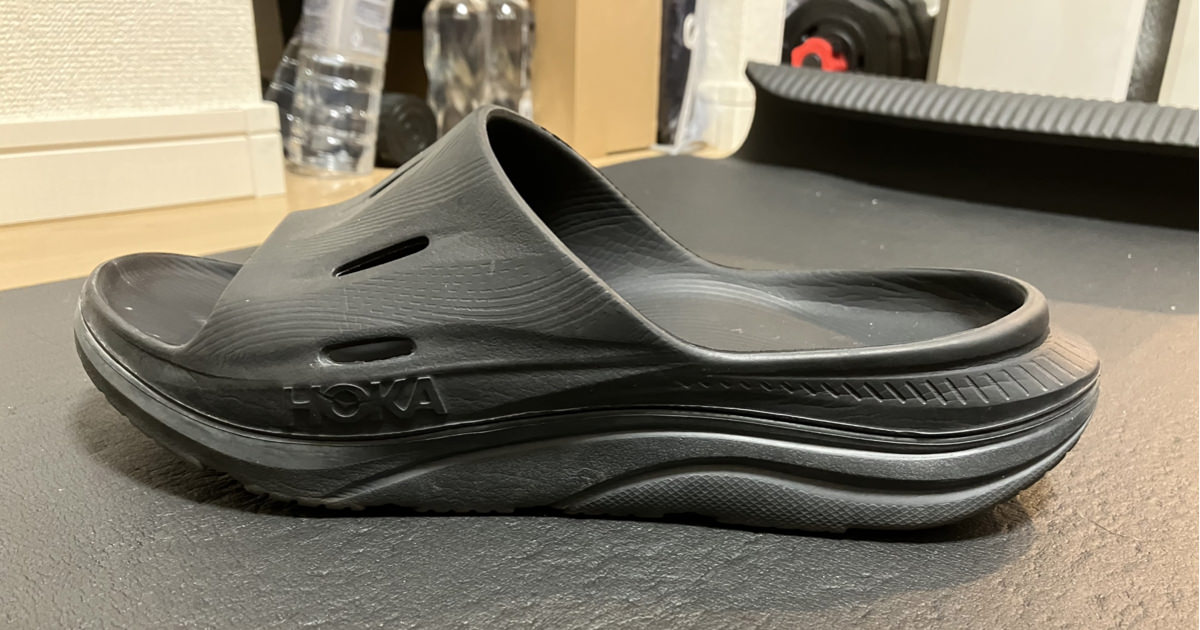 私が使っているHOKAのサンダルを使って、リカバリーサンダルの特徴をご説明します。